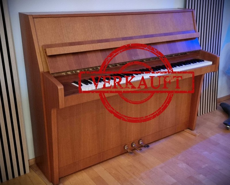 Bauhöhe 112 cm, in Nußbaum, Ausführung "Schulklavier" seit Jahren bewehrt und in vielen Musikschulen zu finden.